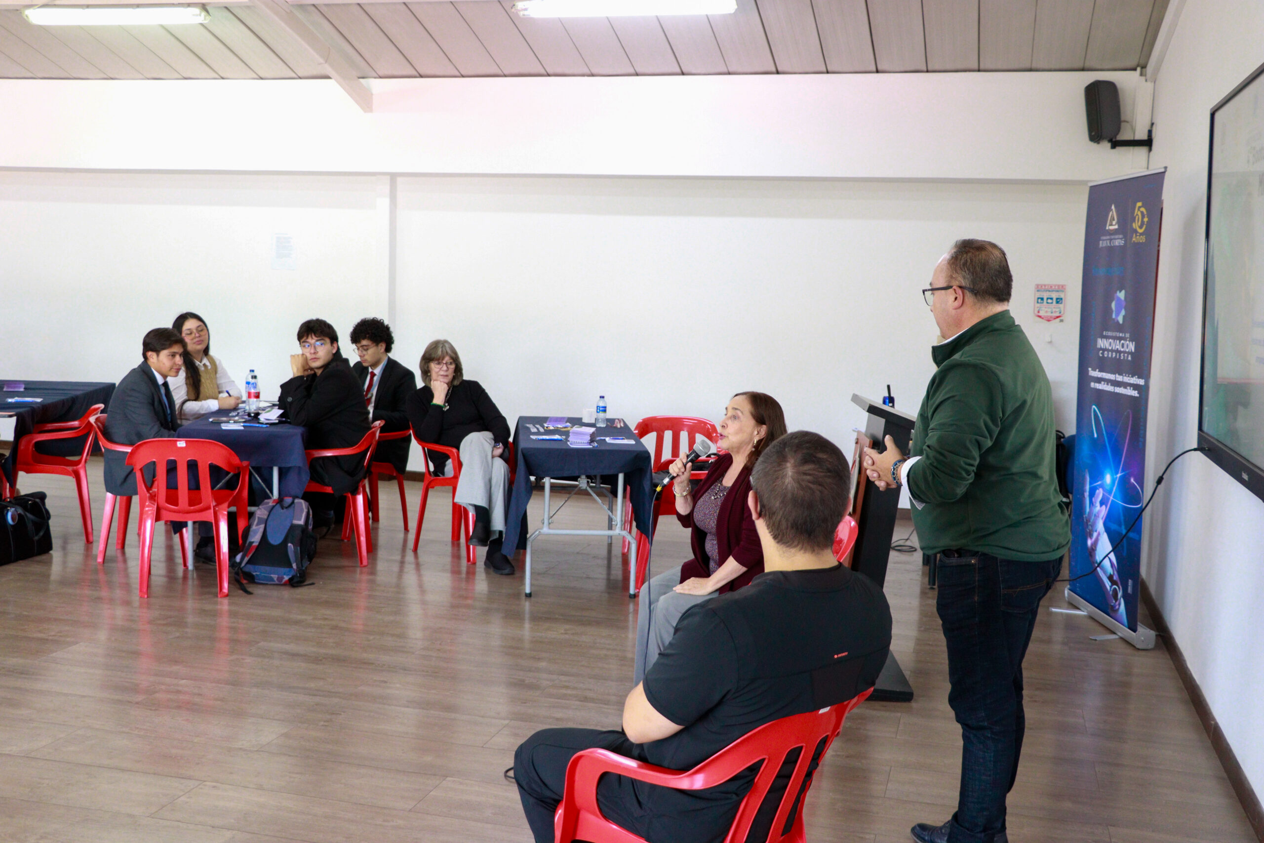 Entre los invitados se contó con Egresados Corpistas emprendedores, quienes compartieron sus experiencias y demostraron que la medicina puede vincularse con otros campos del conocimiento. Casos como el del doctor Enrique Arévalo, egresado de la promoción 88, ejemplifican cómo un médico puede ampliar su vocación de servicio a través de proyectos alternos. Arévalo fundó la Finca El Refugio, en Pacho, Cundinamarca, donde combina su ejercicio médico con el cultivo y estudio del café, involucrando a su familia en una iniciativa que une sostenibilidad y desarrollo local.