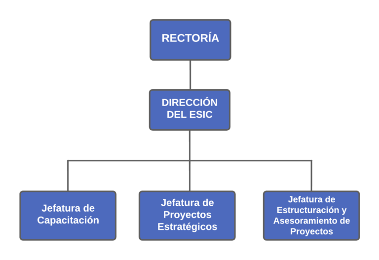 En la Actualidad, el Ecosistema de Innovación Corpista, como una de las dependencias directas de la Rectoría, cuenta con una estructura sólida de formación en innovación y emprendimiento, liderada por la Jefatura de Capacitación; un modelo de acompañamiento que garantiza el asesoramiento y desarrollo de las iniciativas de innovación y emprendimiento de nuestros estudiantes, egresados, docentes y administrativos, liderado por la Jefatura de Estructuración y Asesoramiento de Proyectos; y un área que se encarga del relacionamiento interinstitucional para promover la articulación de proyectos dentro del modelo de desarrollo económico y social de la quíntuple hélice (academia – gobierno – empresa – comunidad – medio ambiente), liderado por la Jefatura de Proyectos Estratégicos. Esta estructura se presenta gráficamente en la siguiente figura: