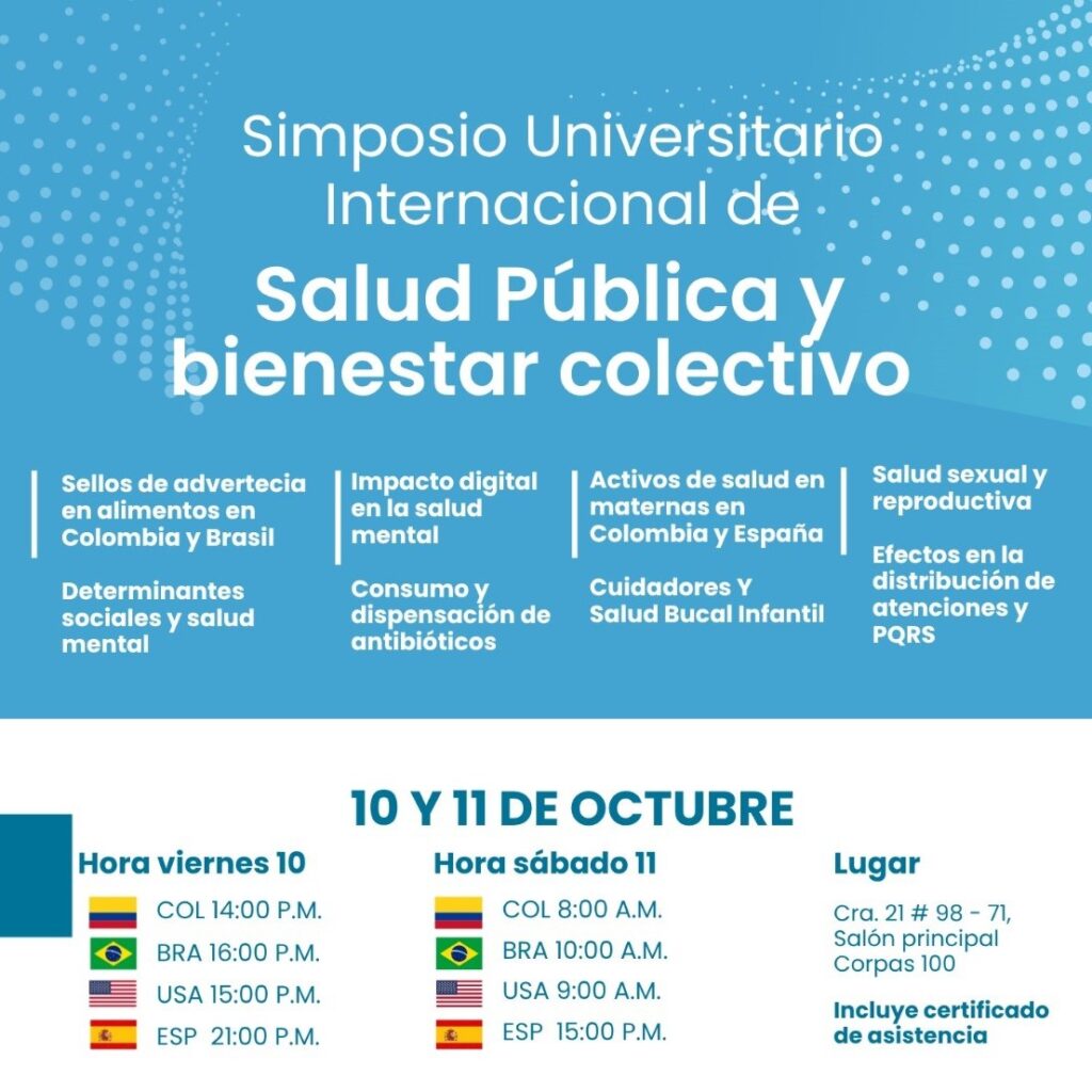 La Maestría en Salud Pública de la Fundación Universitaria Juan N. Corpas, en alianza con la Escuela Bahiana de Medicina y Salud Pública (Brasil) y Así Vamos en Salud, te invitan al Simposio Universitario Internacional de Salud Pública y Bienestar Colectivo.