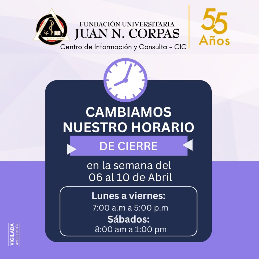 Sabemos que el Centro de Información y Consulta (CIC) es el corazón de tu investigación, lectura y preparación académica. Para seguir brindándote los espacios y el apoyo que necesitas en tu proceso de formación, queremos informarte sobre un ajuste temporal en nuestro horario de atención presencial.