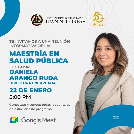 Si estás pensando en dar el siguiente paso en tu carrera profesional, te invitamos a conectarte a esta reunión informativa liderada por Daniela Arango Ruda, Directora encargada de la Maestría en Salud Pública.