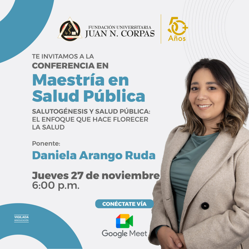 La Fundación Universitaria Juan N. Corpas te invita a participar en la conferencia “Salutogénesis y Salud Pública: el enfoque que hace florecer la salud”, a cargo de la Docente e Investigadora Daniela Arango Ruda, de la Maestría en Salud Pública de la Corpas.