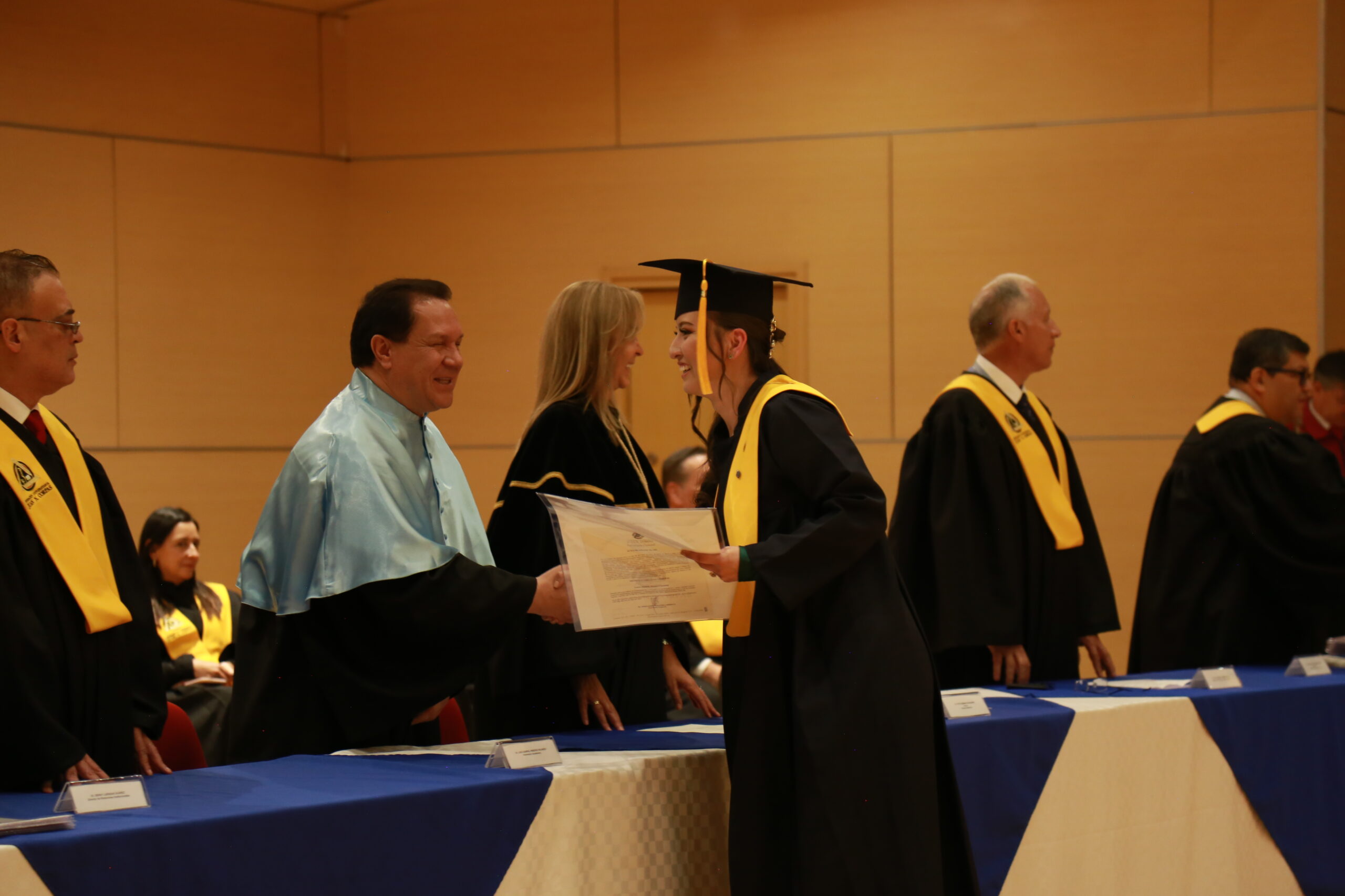 La ceremonia se realizó en el Auditorio Jorge Arango Tamayo de la Institución Universitaria Colegios de Colombia, escenario ejemplar que recibió a todos nuestros nuevos egresados, acompañados por sus familiares y seres queridos, a los miembros del cuerpo docente y a la mesa directiva de nuestra amada institución.