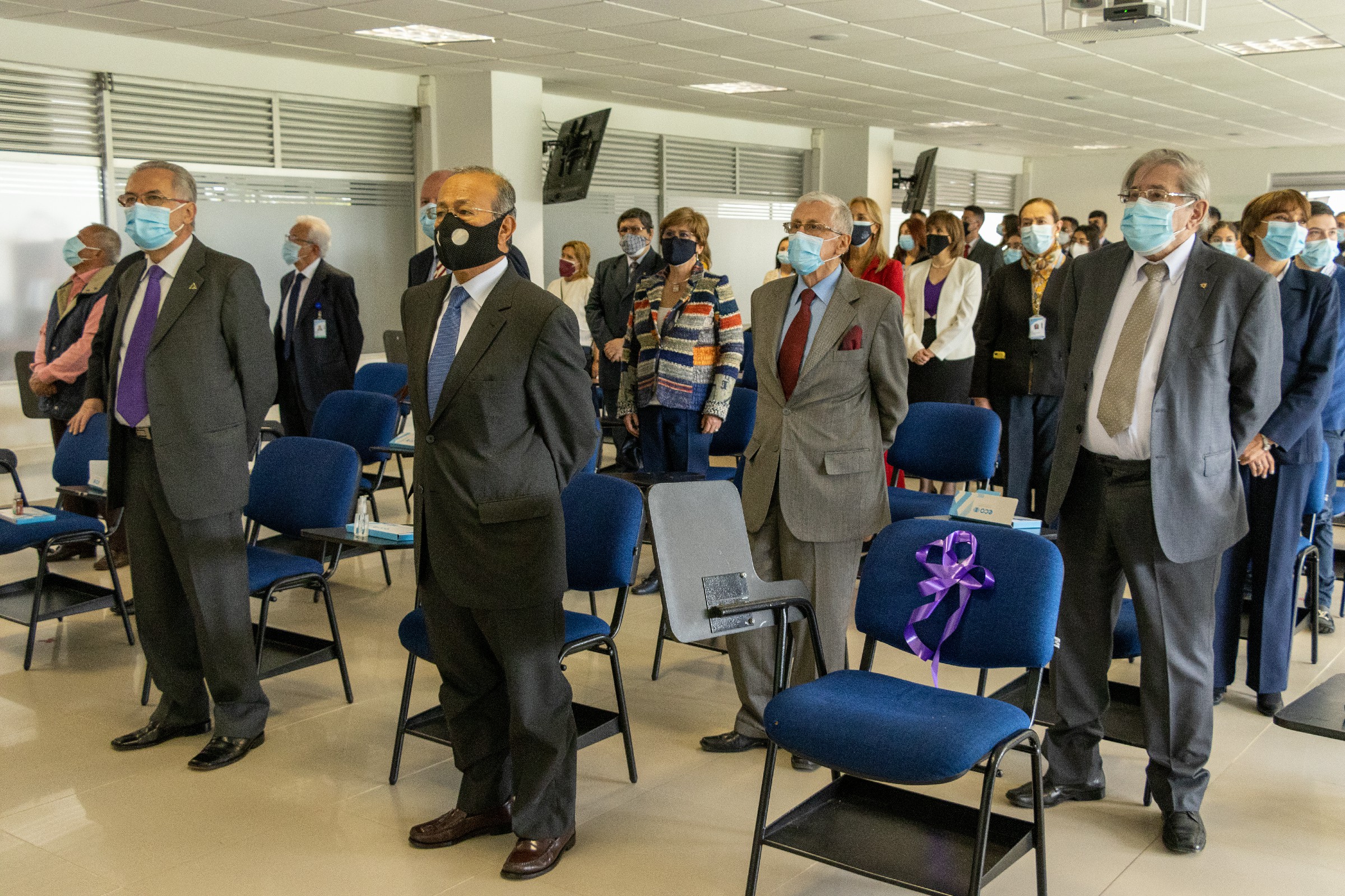 Asegurando todos los protocolos de bioseguridad nueve egresados asistieron al evento y cinco más lograron visualizarlo de manera virtual. Entre risas, recuerdos y anécdotas, todos expresaron algunas palabras, las cuales estaban marcadas por el compromiso que el Doctor Jorge Piñeros Corpas tenía con la comunidad, resaltando como valor principal el humanismo con el paciente.